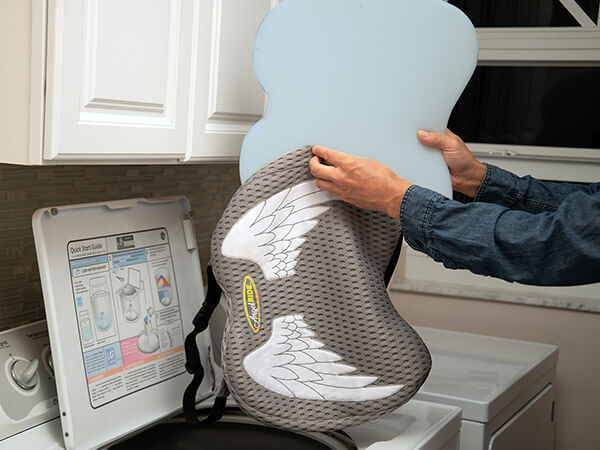 シートに置くだけだから取り付けもカンタン。滑り止め付きで走行中もズレにくく、持ち運びもラクラク。長距離ドライブや旅行のほか、デスクチェアにも使えます。