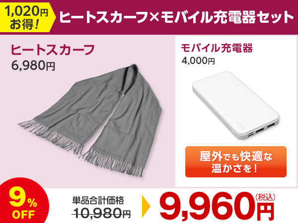 - 2枚セット、ヒートスカーフ単品にはモバイル充電器は付属しません