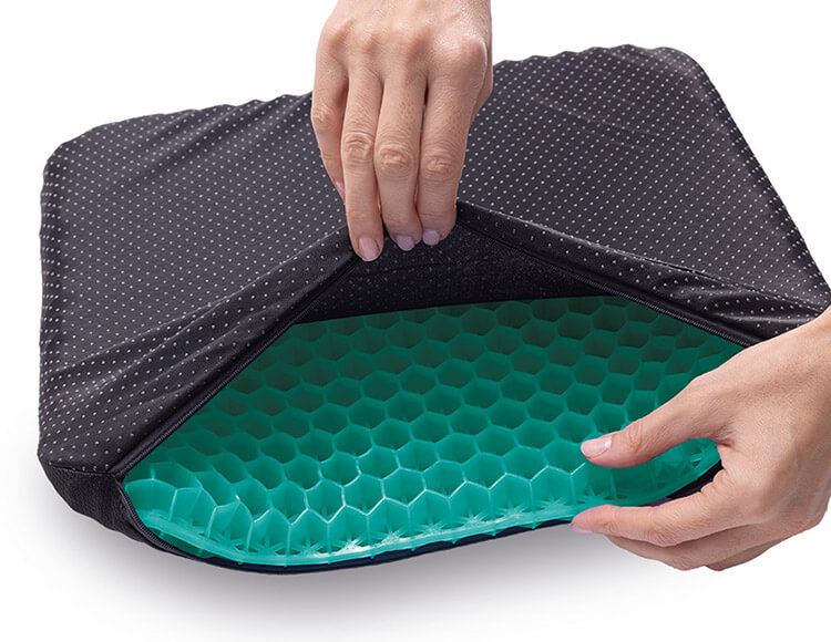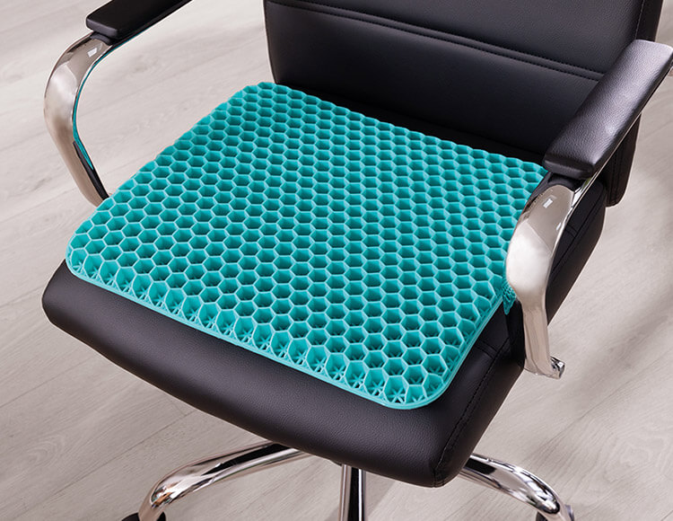伸縮性に優れたゲル素材がお尻にフィットして圧力を吸収!体重を均等に分散するため長時間座ってもお尻が痛くなりにくい。さらに、ハニカム構造で通気性も高く、蒸れにくいので快適に座り続けられます。