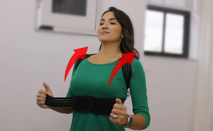 マジックテープで簡単に装着。肩を引き寄せて理想の姿勢をサポートします。服の上から使え、ベルトの緩め具合でお好みのフィット感に調整できます。