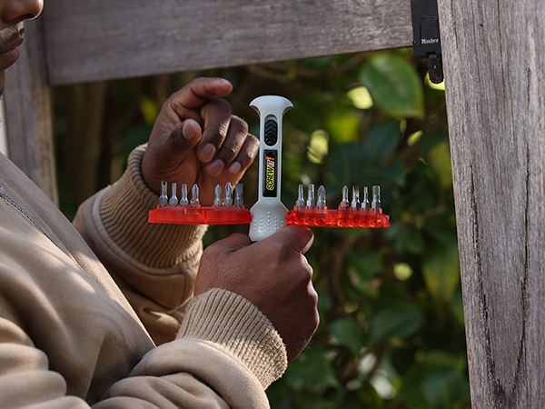 14種類ものビットを本体に搭載!一般的なネジから複雑ネジまで、様々なネジ穴に対応!さらに、ビットはマグネット内蔵だから着脱はワンタッチでスムーズ。これ一本で様々な作業が出来るから、サッと取り出してすぐ作業に取りかかれます。