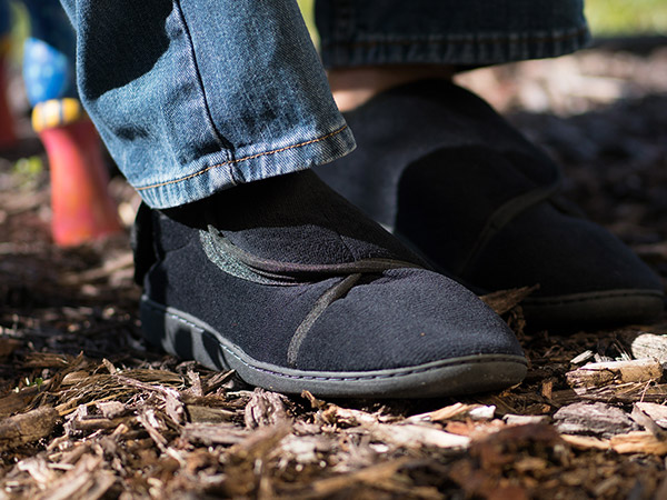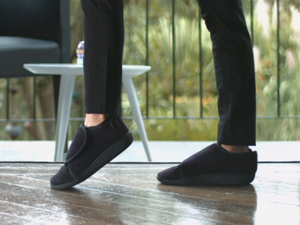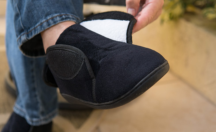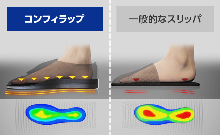足に合わせてワンタッチで固定できるラップ式だから、フィット感抜群。ラバーソールで型崩れしにくく、屋内外問わずご使用頂けます。