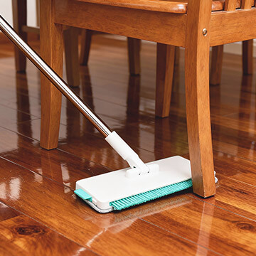 専用のマイクロファイバーパッドで濡れた汚れも乾いた汚れも逃さずしっかりお掃除!さらに、カチッと押すだけで、丈夫でしなやかなソフトブラシが出現!ほうきとして使用出来て、床に落ちた髪の毛やホコリもサッと集めてお掃除できます。