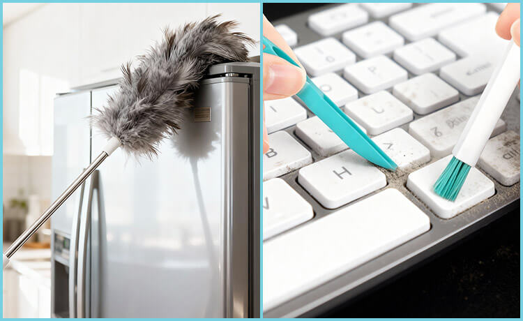 伸縮するダスターを内蔵しているので、高いところのホコリ取りも簡単!すき間ブラシを使えば、細くて掃除しにくい場所までしっかりきれいにできます。
