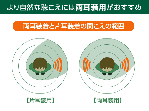 両耳装着のメリットは3つあります。両耳装着と片耳装着の聞こえの範囲