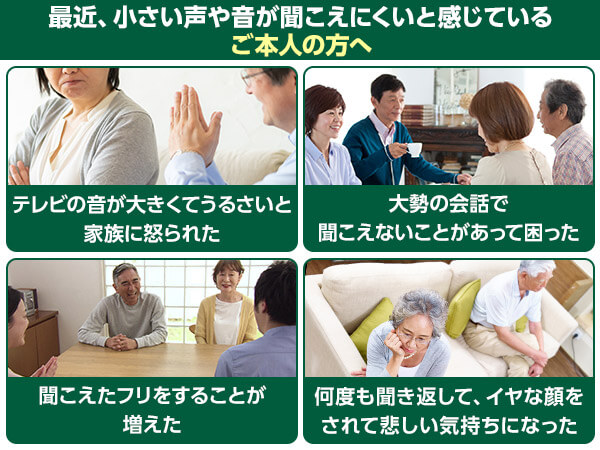 楽ちんヒアリングをつける前は家族の話が聞き取れないこともありましたが、今はみんなの声がよく聞こえ、昔みたいに会話ができて嬉しいです。ありがとうございます。
