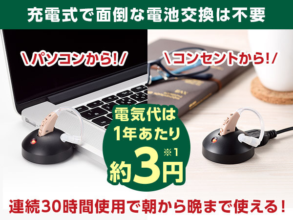 家族との会話が聞き取りづらく思い切って購入。ボリューム1でもよく聞こえ、自分の声もクリア。電池交換不要で買って良かった。