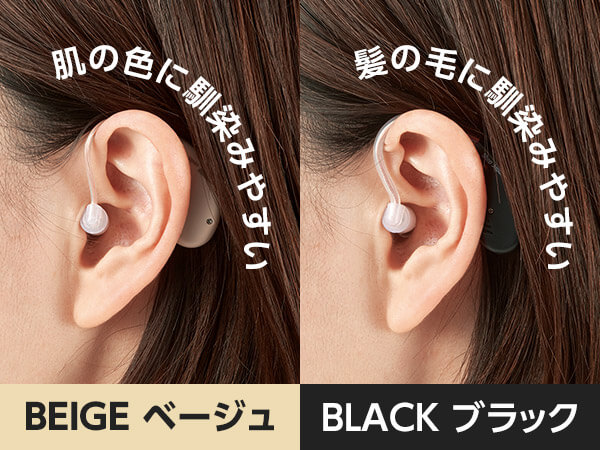 あまり集音器を着けていることは目立ちたくないもの。だから、肌になじんで目立ちにくいベージュと髪の毛になじんで目立ちにくいブラックの2色をご用意。