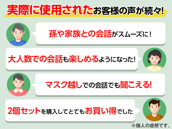 迷ってたけど、試してみたらビックリ!音がクリアで聞きやすくて、驚きました。会話生活や他の人とのコミュニケーションが楽になり精神的にもすごく明るくなりました。よかったです。