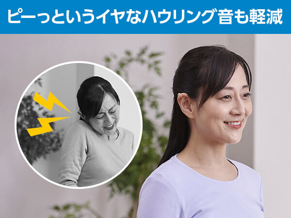 「ピー」と鳴るイヤなハウリングが起きた際に、その逆の波形をつくりだすことでハウリングを相殺する「逆位相方式」になっているため、ハウリングを軽減することを実現しました。