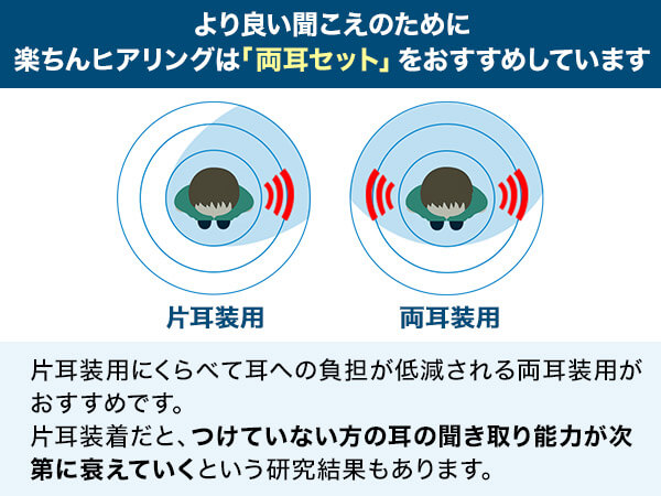 片耳装着だと、つけていない方の耳の聞き取り能力が次第に衰えていくという研究結果もあります。