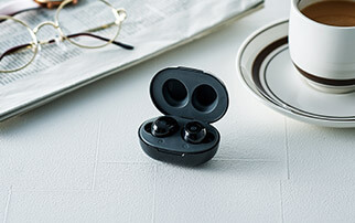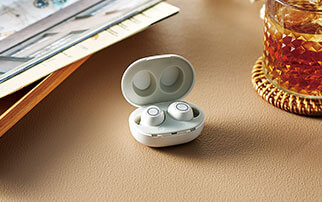 電源のオンオフも音量調節も1つのボタンで操作できるから使い方カンタン!電源のオンオフは3秒の長押しで、音量調節はボタンを押すたびに音量が上がり、6段階からお好みの音量を選べます。耳に装着したままでもボタンが押せるので、場所や音に合わせて、最適な音量にすぐ合わせられるから便利。