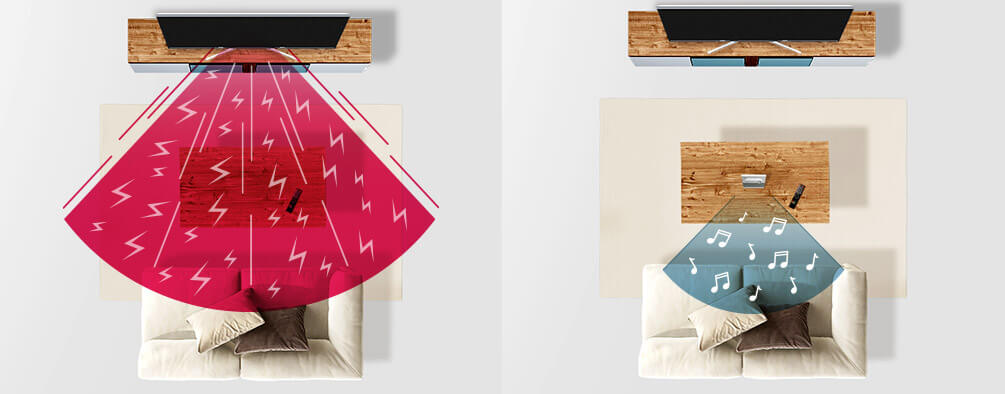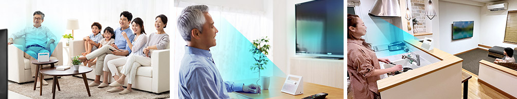 2.4GHz無線伝送方式を採用し、送信機から本体スピーカーへの音声遅延を抑えながら、10m(障害物なしの直線距離は約30m)も音を飛ばすことができる。音量を上げるしかなかった聞きにくいテレビの音や言葉が、ハッキリ聞こえ、ドラマやバラエティの聞こえにくいストレスも、家族から音が大きいと怒られることもなくなります。また、家事をしながらで音が聞こえにくい場面でも大活躍!