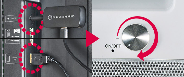 テレビに送信機に挿して、スイッチを入れるだけで自動接続できる簡単2ステップ。どなたでもすぐに使えて安心!