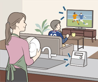 キッチンなど離れた場所で