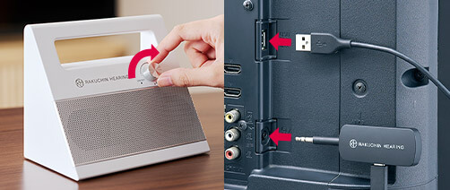 テレビの送信機に挿して、スイッチを入れるだけで自動接続できる簡単2ステップ。どなたでもすぐに使えて安心!