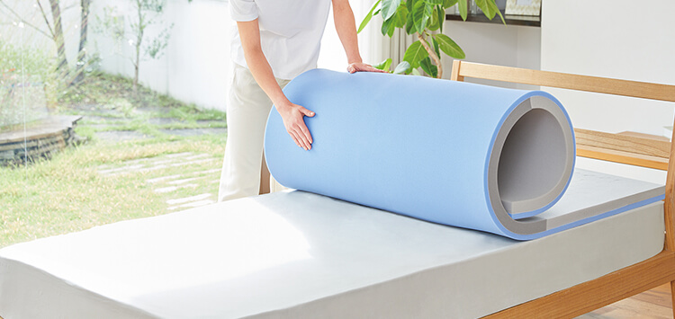 いまお使いの敷き布団やベッドマットレスの上に敷くだけで、快適な睡眠が得られます。寝具を買い替える必要がなく、手軽に、簡単にお使いいただけます。