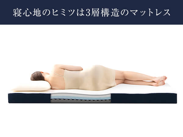 プレミアメルティストは、硬さ・形状の異なる独自の異素材を3層に組み合わせて、贅沢な寝心地をとことん追求。