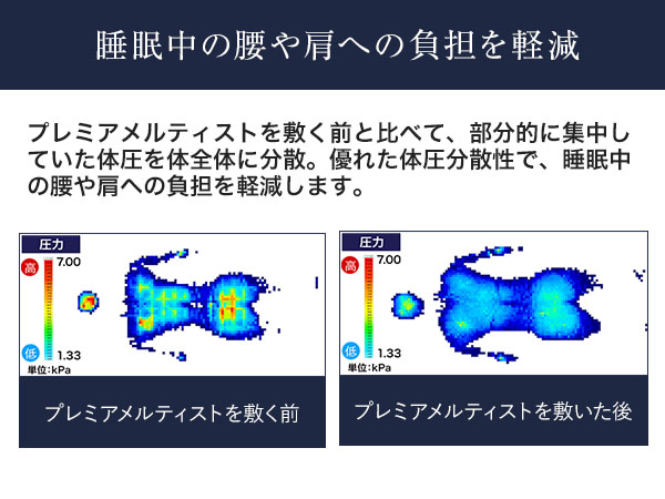 優れた体圧分散性で、睡眠中の腰や肩への負担を軽減します。