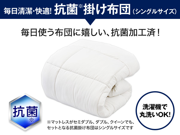 - マットレス本体のみ防カビ仕様/JIS Z 2911「かび抵抗性試験方法」による自社試験の結果/全てのカビを防ぐものではありません