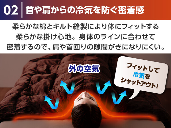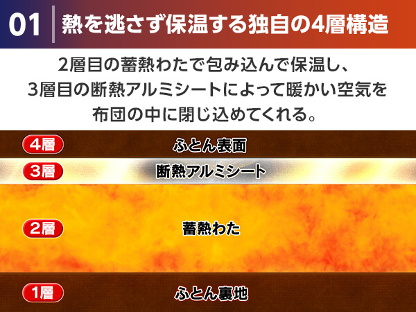 3層目の断熱アルミシートによって暖かい空気を布団の中に閉じ込めてくれる。