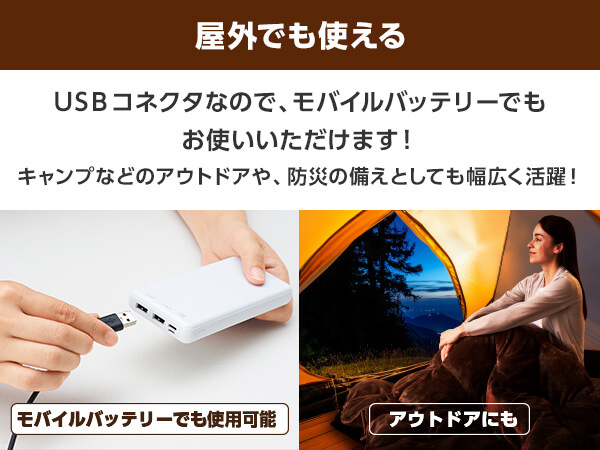 USBコネクタなので、モバイルバッテリーでもお使いいただけます!