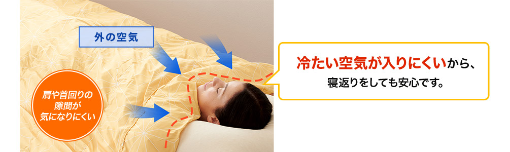 たった1枚掛けて寝るだけで、暖かさに包まれて、一晩中快適にぐっすり眠ることができます。