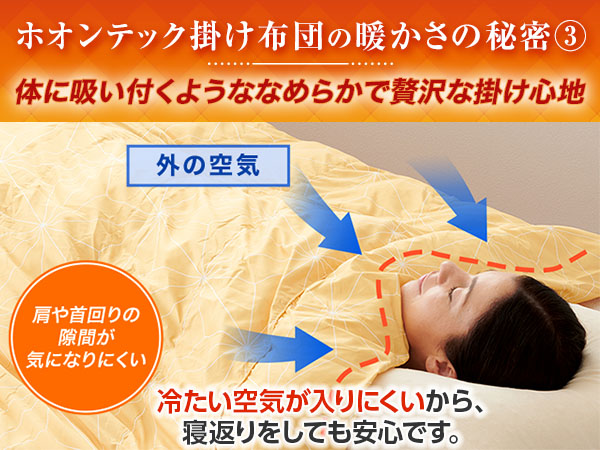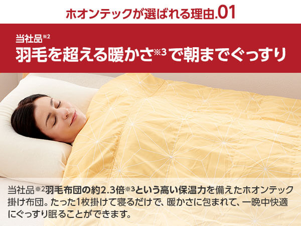 当社品※2羽毛布団の約2.3倍※3という高い保温力を備えたホオンテック掛け布団。