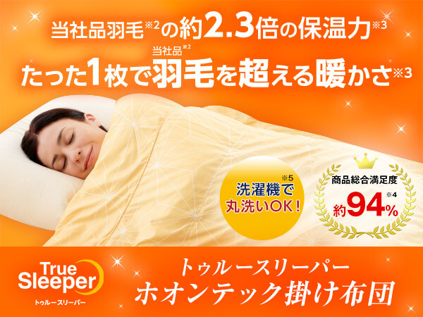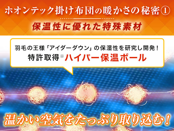 当社品※2羽毛布団の約2.3倍※3という高い保温力を備えたホオンテック掛け布団。