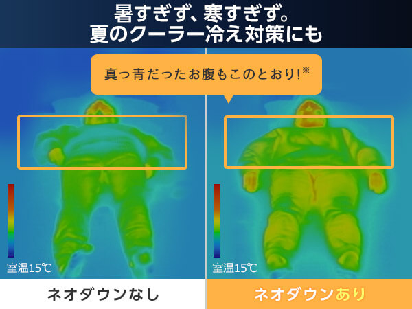 - 実験条件:15℃環境下で15分間ネオダウンをかける