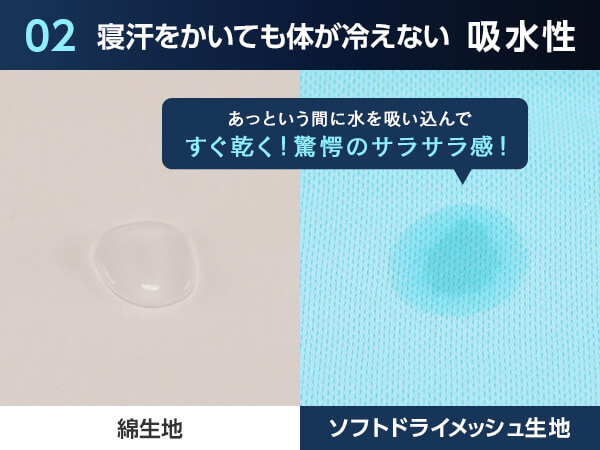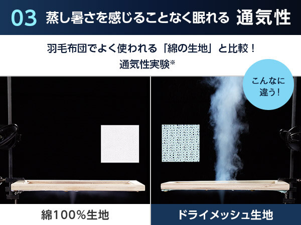 通気性に優れたドライメッシュ生地を採用したことにより、寝苦しい季節も蒸れずに快適にお休みいただけます。