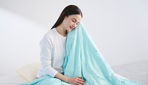 高級羽毛をヒントに開発された特殊な中綿が、体温の自然な温かさを効率的にキャッチし、優しく布団の中を保温します。