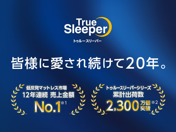 - 1 2003年4月~2025年3月末までのトゥルースリーパーシリーズ(マットレス・ピロー・コンフォーター)の累計出荷数の合算