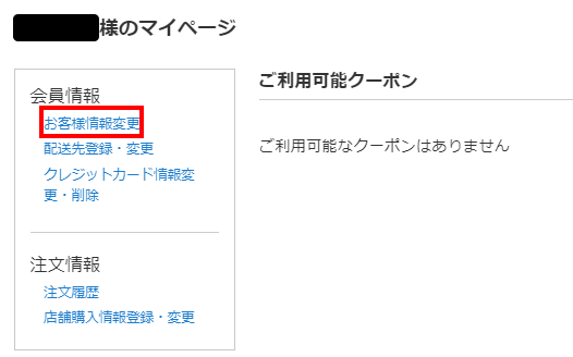 ログイン後、「お客様情報変更」をクリックし、お手続きください。