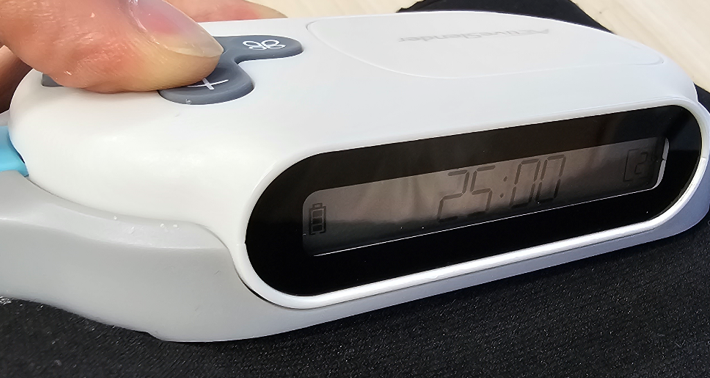 電源を入れてお腹に巻いた状態でプラスボタンを押して強度を調整します。