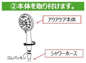 ゴムパッキンを付けたままの状態で、本体を時計回りに回して取り付けます。