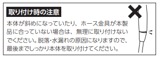 ホース金具にアダプターを取り付け、アクアケア本体をアダプターに取り付けます。