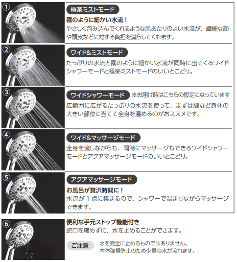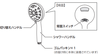 ※以下のモードでシャワーとして使用する際は、背面スイッチは中央の位置にしてください。