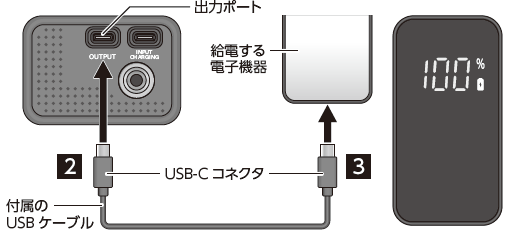 ※他の電子機器に給電する前に、本体の電池残量を確認してください。