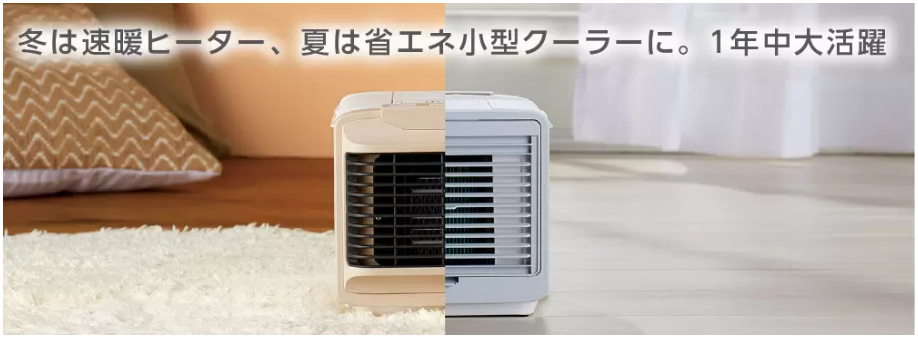 また、1時間当たりの電気代は・ヒート機能の場合:18.6円・クール機能の場合:0.217円 です。