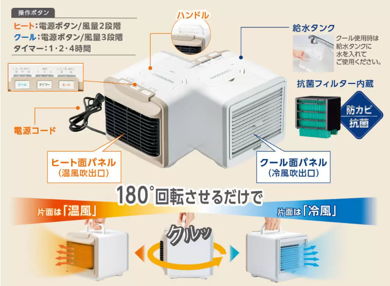 ご使用になりたいパネル面(温風または冷風の吹出口)を、風をあてたいほうに向けてご使用ください。