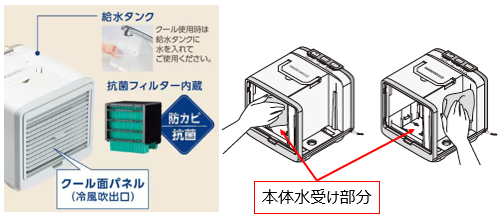 給水タンクを外した状態で「クール」機能を作動し乾燥させてください。
