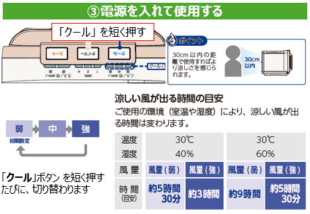※フィルターが乾燥していると、涼しい風が出るまで約1分かかります。