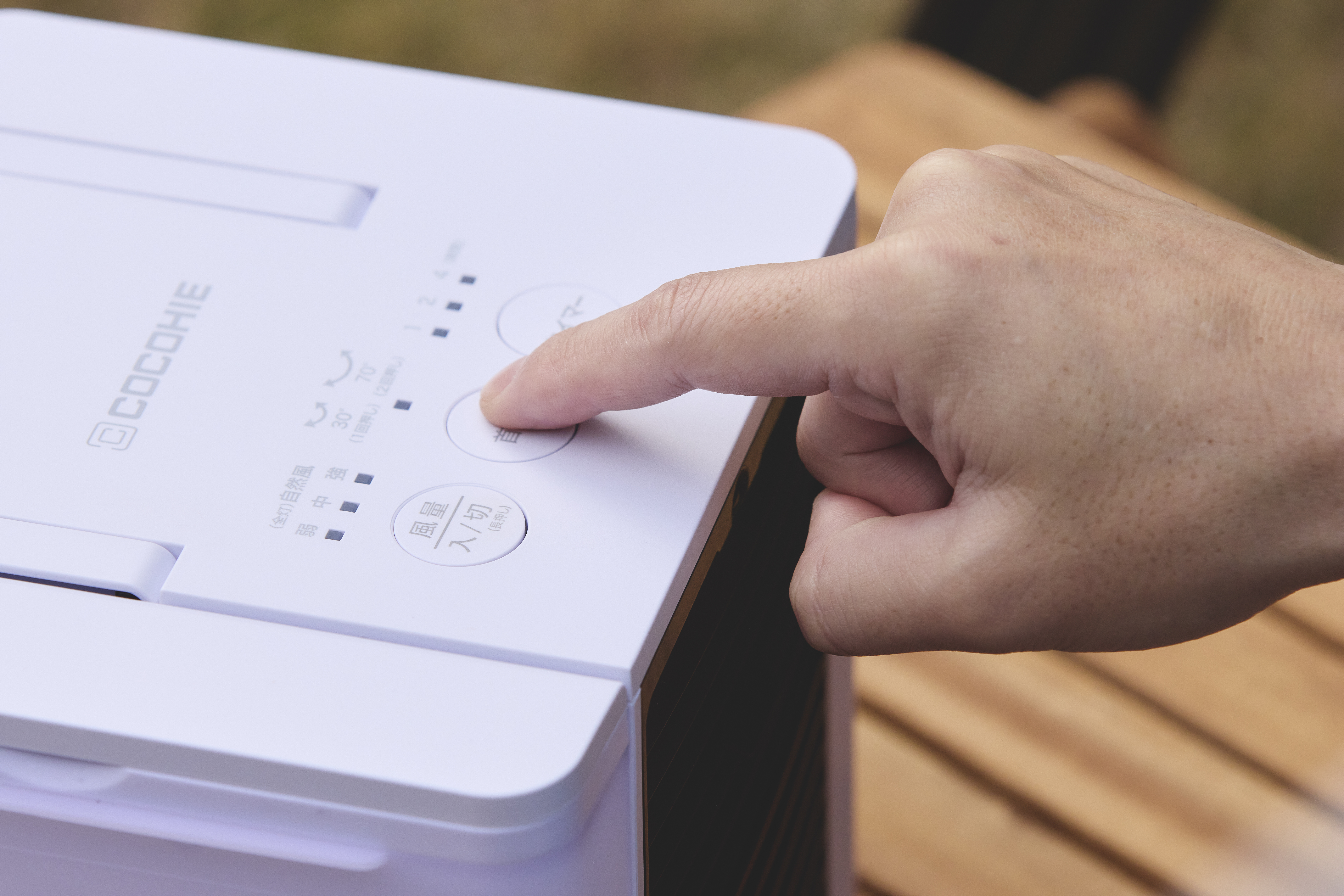 「首振りボタン」を1回押すと30度、2回押すと70度の範囲で回転し、3回押すと回転が止まります。