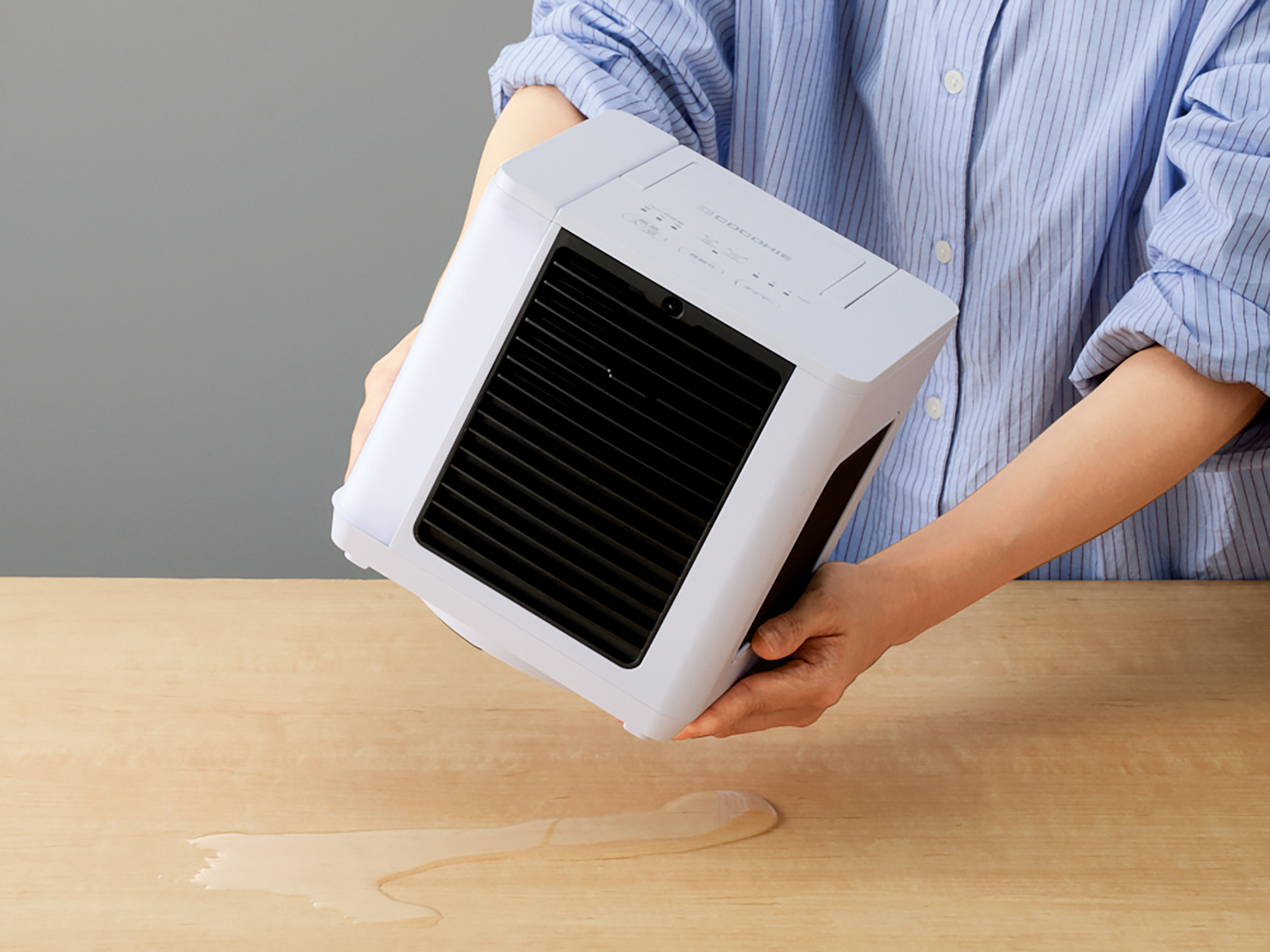 水が入った状態で本体を傾けたり、急に動かすと本体から水が漏れる場合があります。
