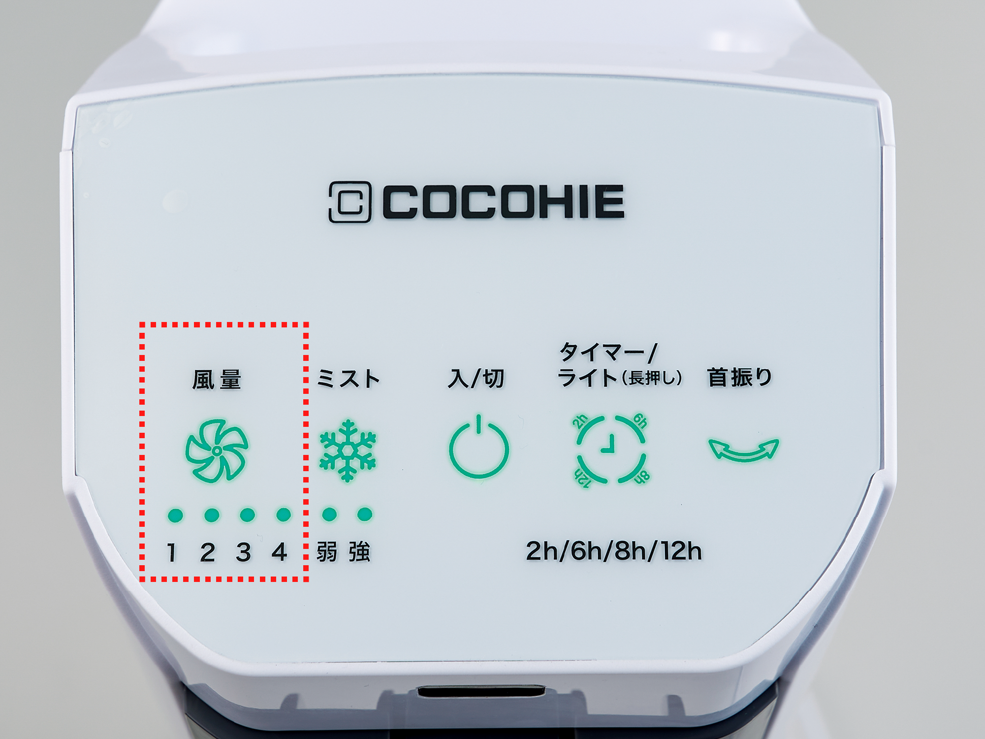 電源を入れた直後は、風量が一番強い4に設定されています。