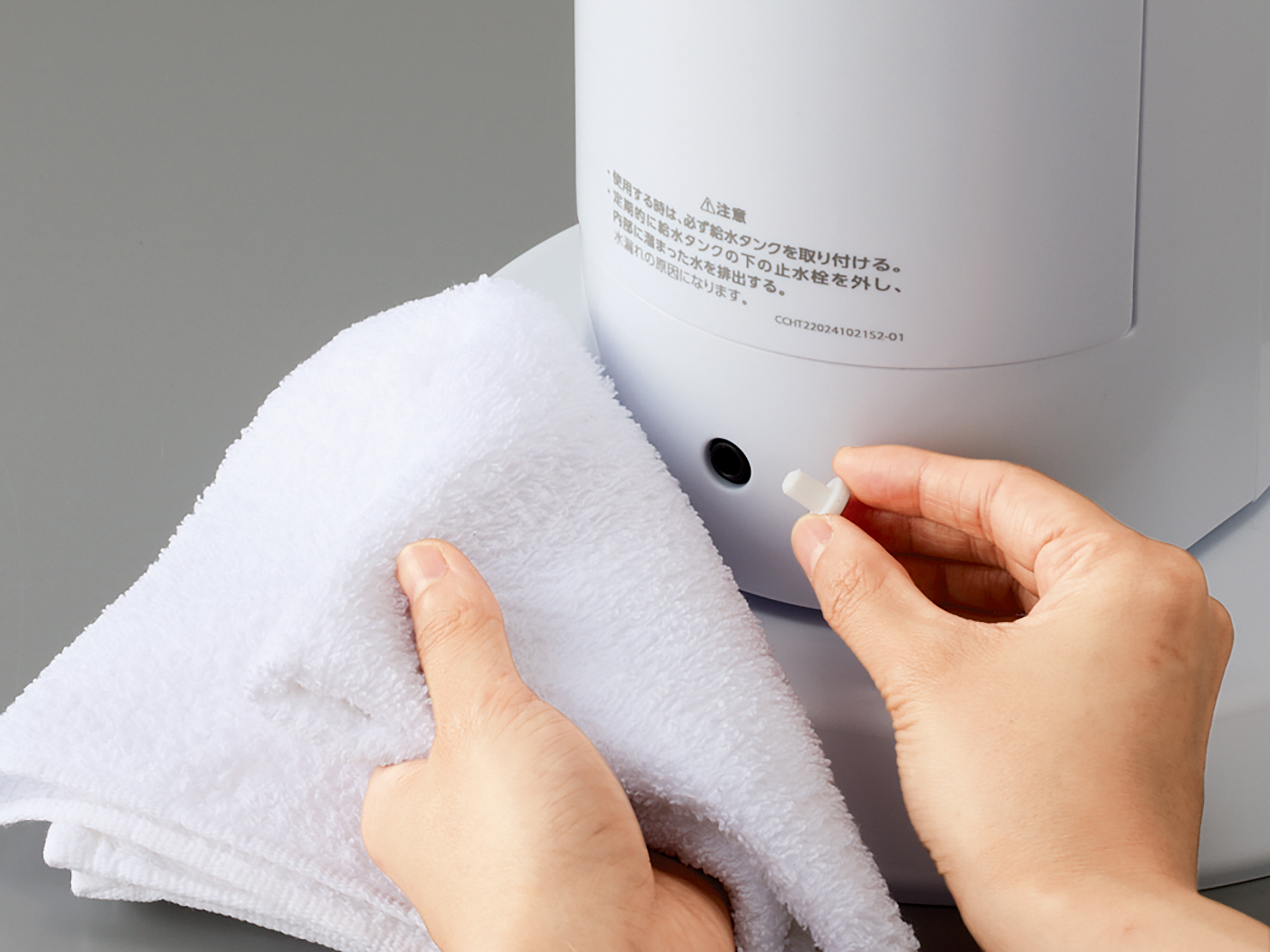 水受けは、週に一回を目安に製品背面の止水栓を外し、本体内部の水受けに溜まった水を抜いてください。