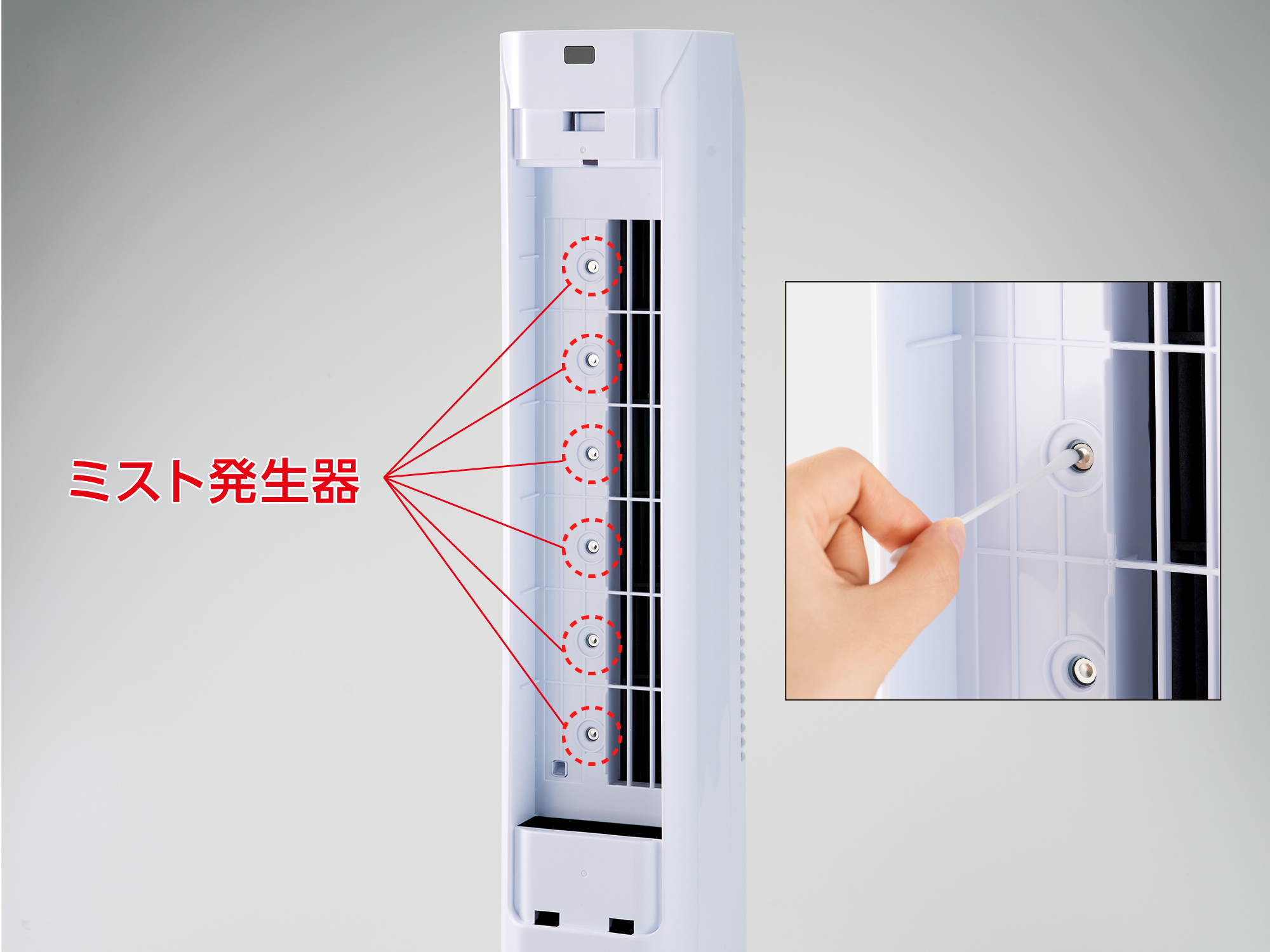 ミスト発生器がホコリ等の付着で汚れた場合は、