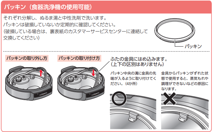 パッキンは破損していないか定期的に確認してください。