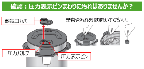 ●圧力表示ピンのまわりに、汚れや異物が付着していませんか?